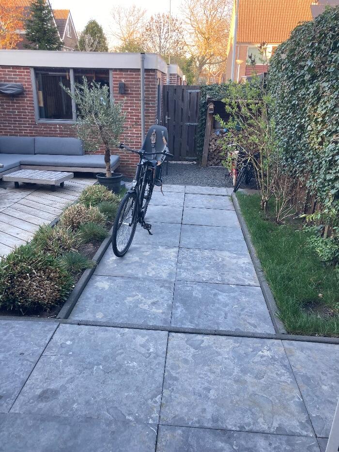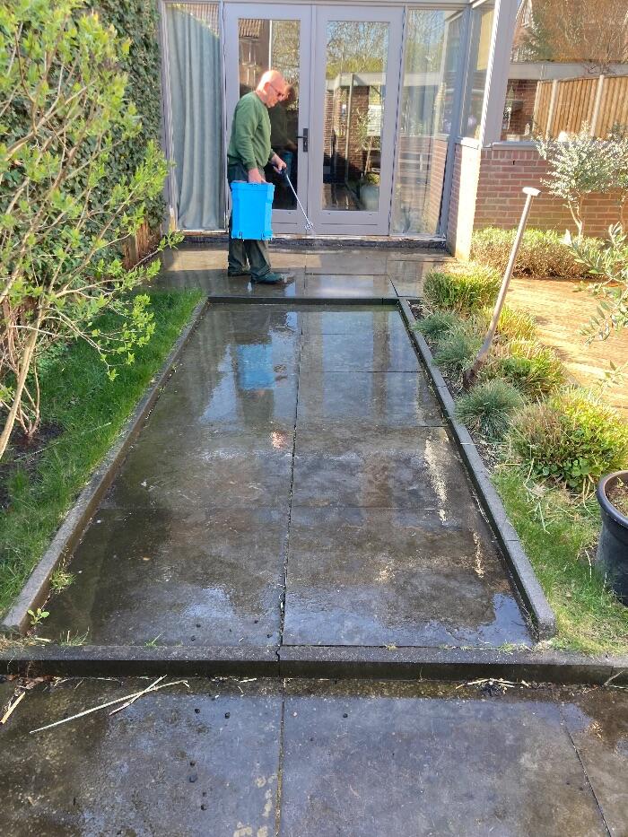 Bestrating van een binnentuintje ook weer groene aanslag vrij!